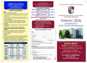 Hartstown Adult & Community Education Brochure Spring 2026 Full of evening activities in the Dublin 15 community.